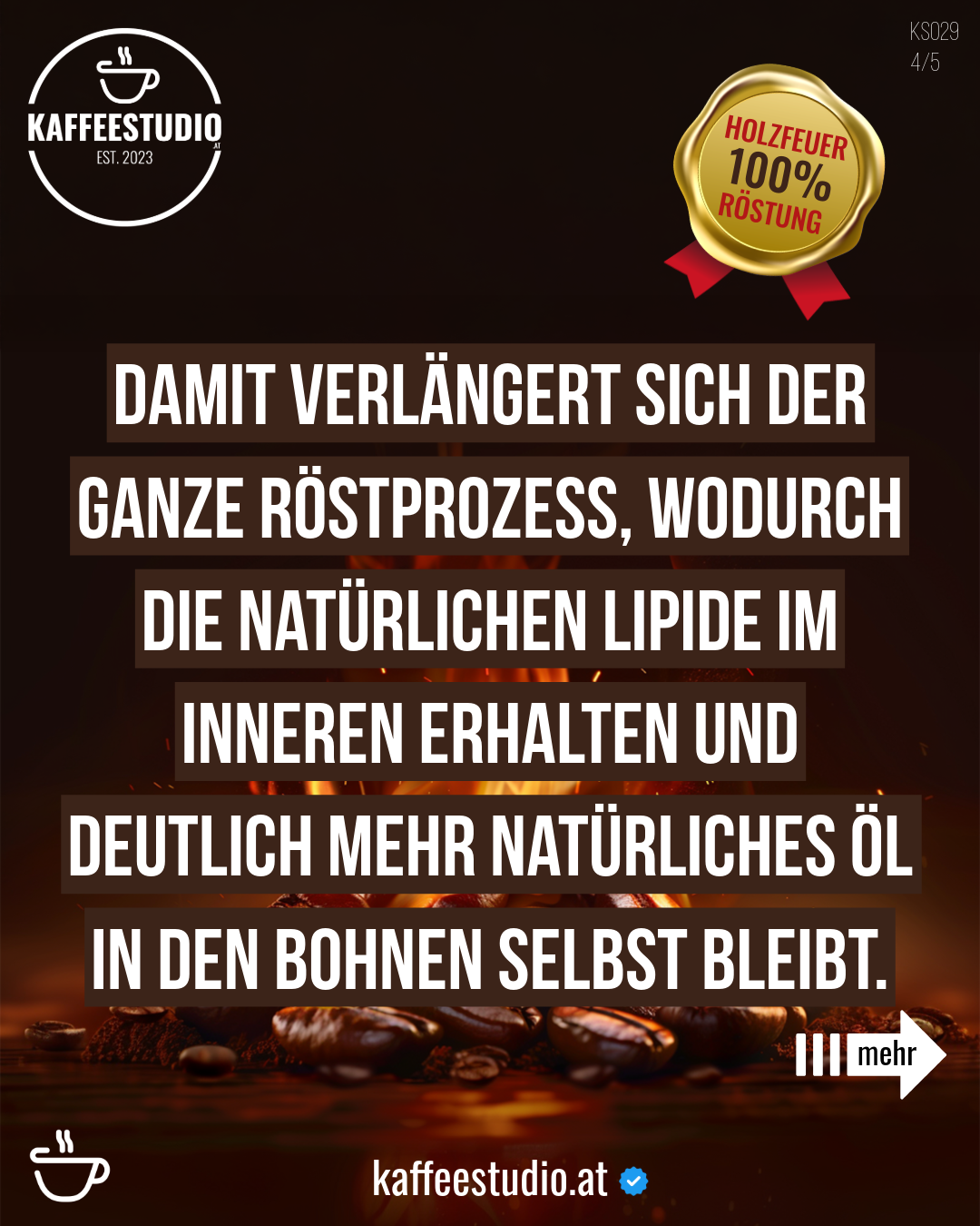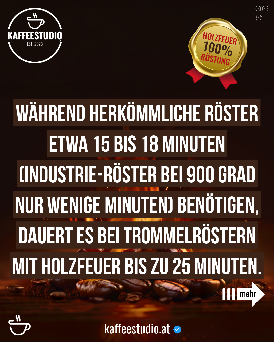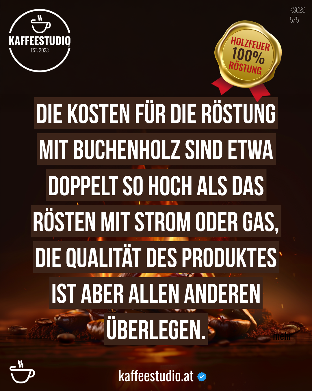 „Unsere Holzfeuerröstung erzeugt einen der säureärmsten Kaffees Österreichs. Perfekt für empfindliche Mägen.“